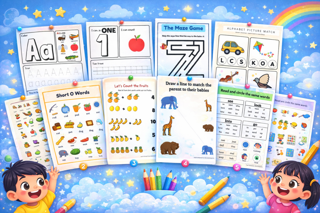 These worksheets gently develop alphabet recognition, counting, matching, problem-solving, and logical thinking—the same skills your child will use throughout life. You’re not just teaching today’s lesson—you’re building their future.